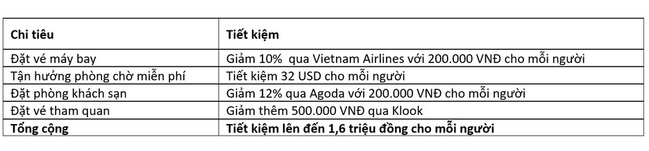 Trở về sau hành trình 5 ngày 4 đêm vi vu Đà Nẵng, Tú Linh (Hà Nội) cùng hội bạn thân cũng hào hứng chia sẻ loạt bí kíp tiết kiệm được hơn 7.000.000 đồng cho cả chuyến đi với thẻ tín dụng VIB. Nhóm 6 người có 6 thẻ VIB. Nhờ chia nhỏ nhiều lượt booking, cả nhóm đã hời 1.200.000 VNĐ vé máy bay khi áp mã code VIBNOW10 giảm 10% trên mỗi người trực tiếp từ Vietnam Airlines, giảm tiếp 1.200.000 VNĐ khách sạn khi đặt phòng ưu đãi 12% qua Agoda và 500.000 VNĐ khi đặt vé tham quan vui chơi qua Klook, dành riêng cho thẻ tín dụng VIB.